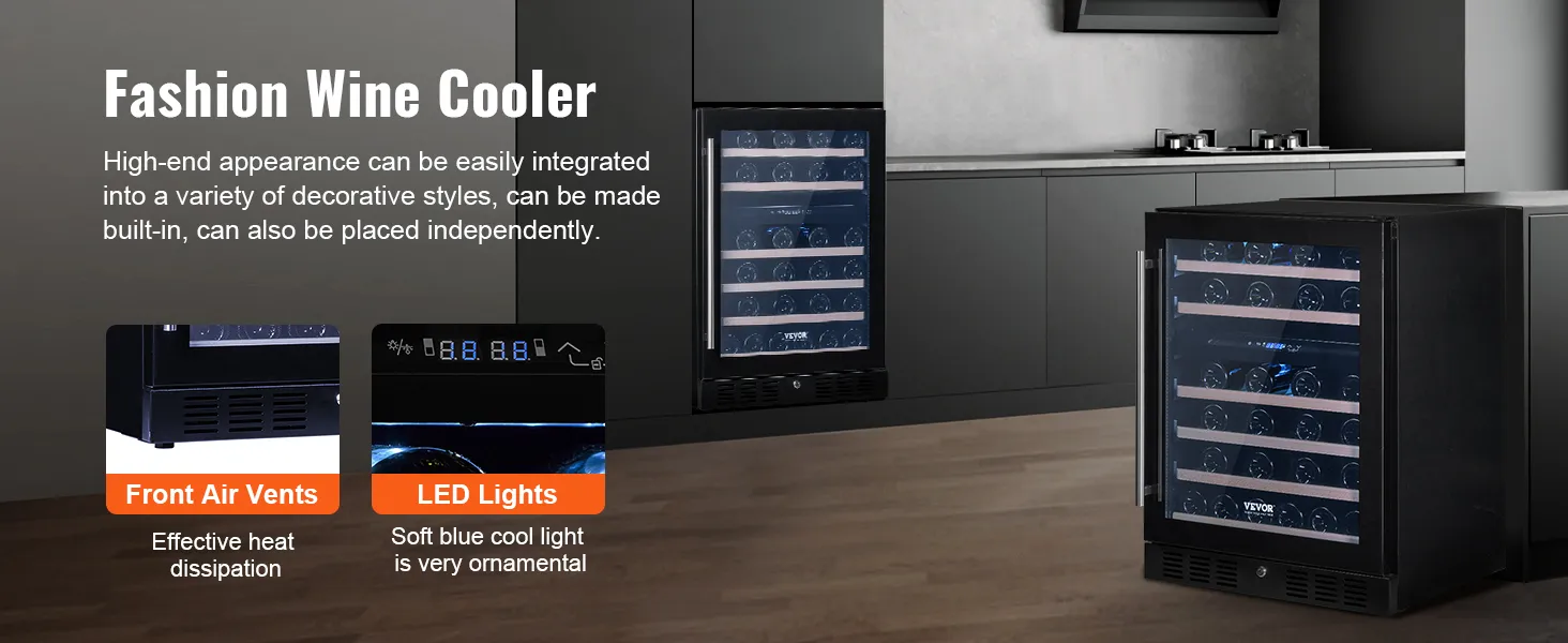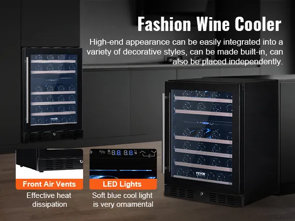 The VEVOR wine cooler offers great value for the price. It is affordable while offering many features. The sleek design and solid build make it a great addition to any home. With its 46 bottle capacity, it provides enough storage. The dual zone feature is great for keeping wine at optimal temperatures. Enjoy the benefits of an upscale wine cooler without breaking the bank. Blue LED light adds elegance. This wine cooler is perfect for both novices and experienced wine lovers.