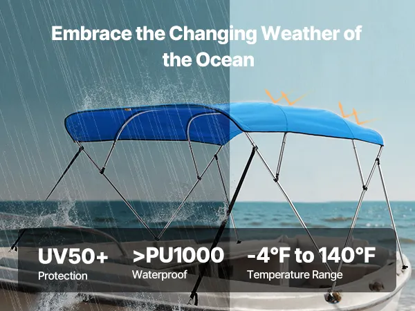 Durable 600D Sunshade Fabric: This boat awning is made from heavy-duty 600D marine-grade polyester fabric, offering excellent UV protection (Sun Shade) and water resistance (>PU1000). The fabric is designed to last longer without fading or cracking, thanks to its high-density weave and double-stitched seams. Ideal for keeping you cool and dry on the water!