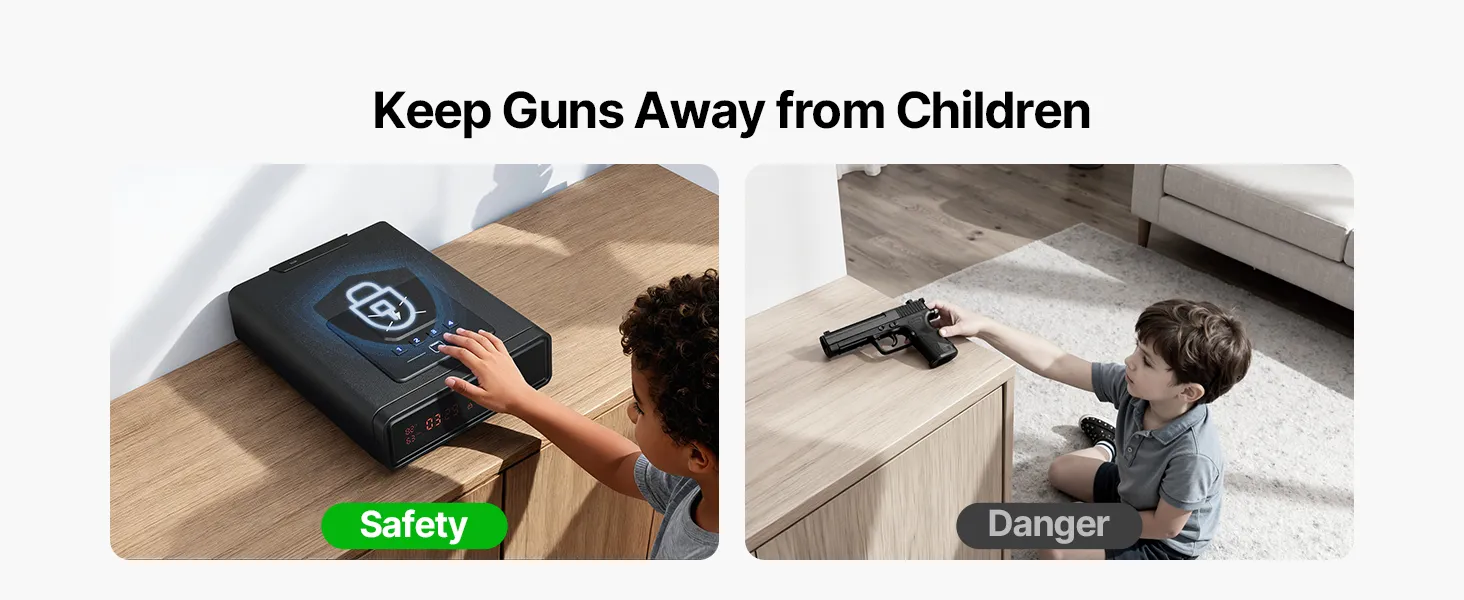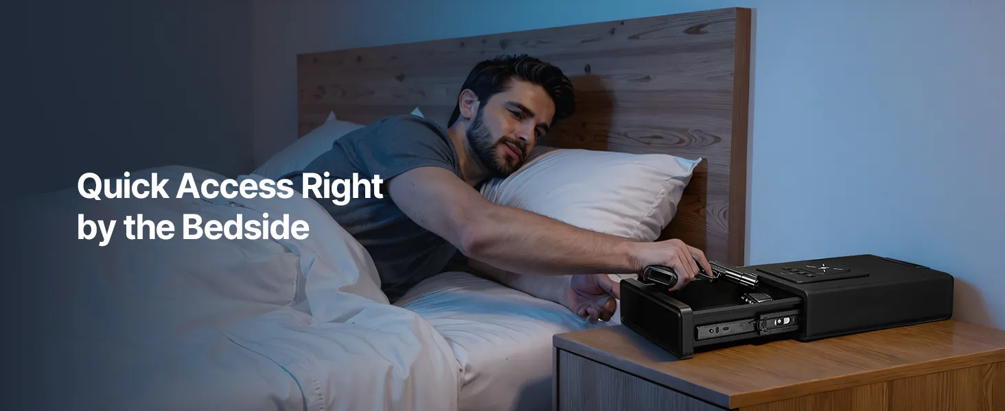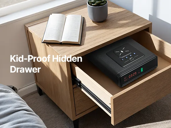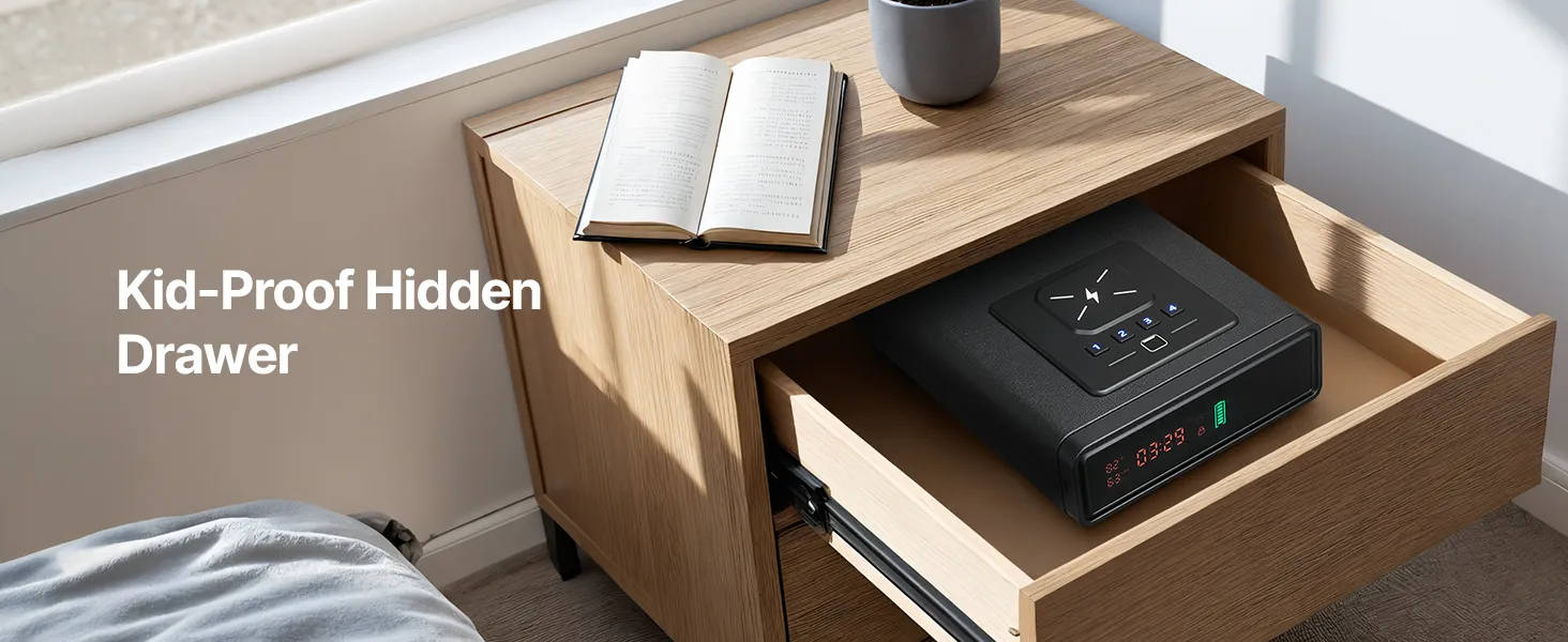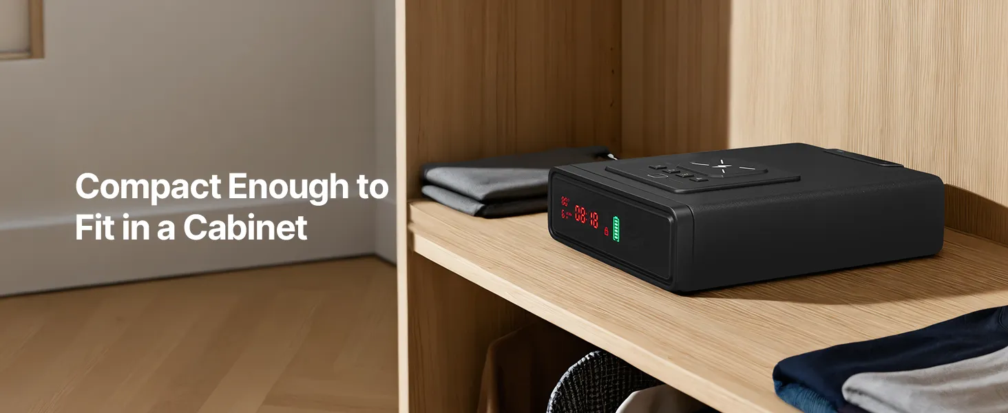 This handgun safe secures your home and valuables. It holds 2 handguns and 2 magazines with fingerprint, code, and key access, and features wireless charging to keep your firearms and devices ready for emergencies.