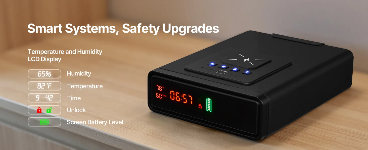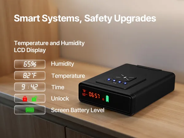 Temperature & Humidity Display: The gun safe features an LCD to quickly and accurately monitor temperature and humidity. Easily check battery level and add a desiccant if humidity is high