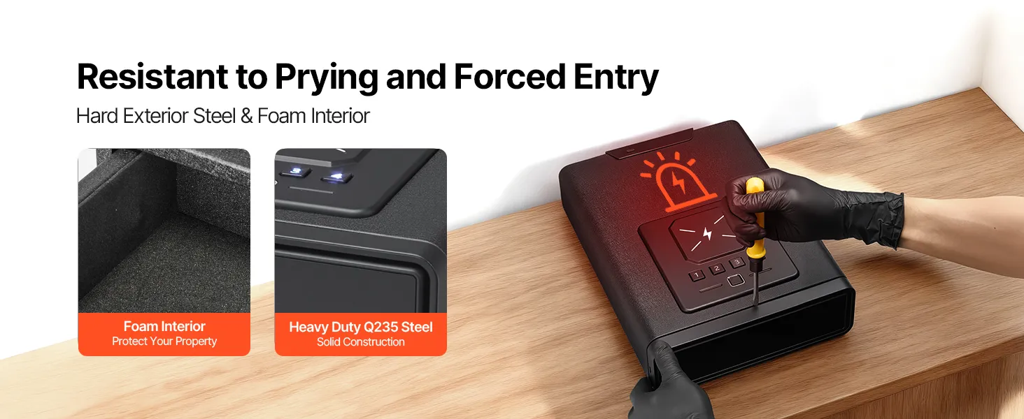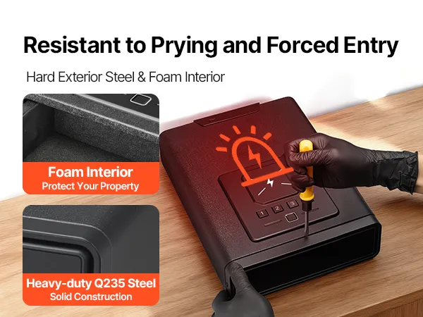 Durable & Secure: Our handgun safe is made of thick metal with a heavy-duty anti-pry design to avoid break-ins and keep children from accessing firearms. High-density foam protects your gun from scratches and damage caused by vibrations