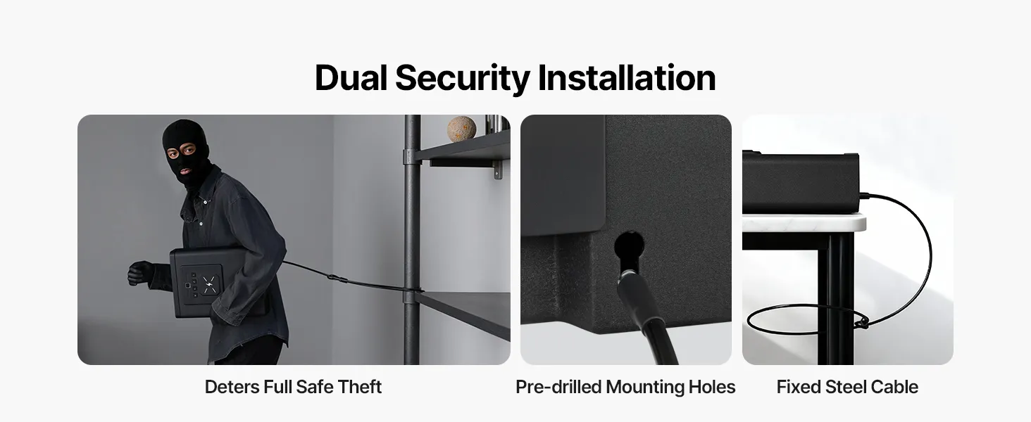 Dual Mounting: This pistol gun safe includes a security cable and expansion screws, offering dual installation options. Secure to any fixed object for quick access, ideal for desks, nightstands, bookshelves, or vehicles