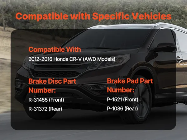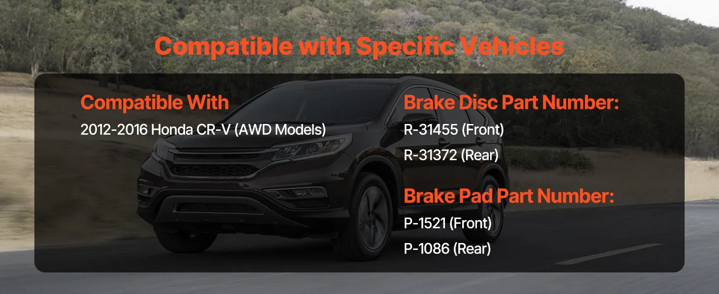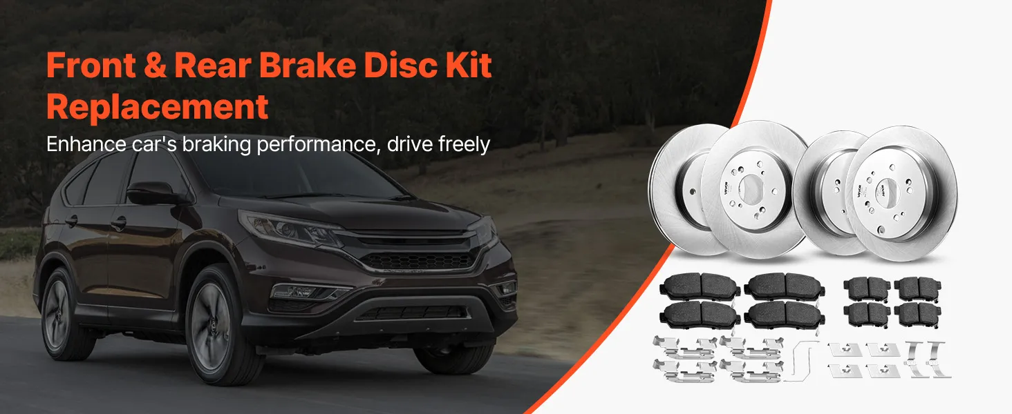 Ensure safety and peak performance with the VEVOR front & brake kit and performance brake system designed for 2012-2016 Honda CR-V AWD models. This high-quality vehicle brake replacement kit includes front and rear disc brakes, ceramic brake pads, and all necessary clips, making installation easy and precise. Engineered to meet OE specifications, it reduces dust, noise, and vibration while extending brake life. Durable and rust-resistant, this ATV brake set provides reliable stopping power, giving you confidence and control on every drive.