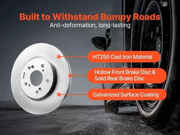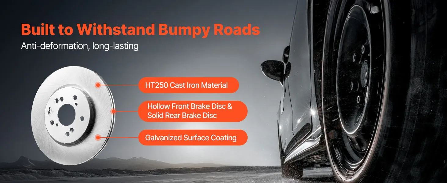 The front and rear disc brake rotors of VEVOR are made of high-quality galvanized steel, which doesn’t rust or corrode. Your brakes will last longer, stay clean, and help you stop when you need to. The corrosion-resistant surface not only enhances safety but also looks good while keeping your car at its best performance. If the weather is wet or the season is changing, an ATV brake set you can count on will give you long-lasting confidence.