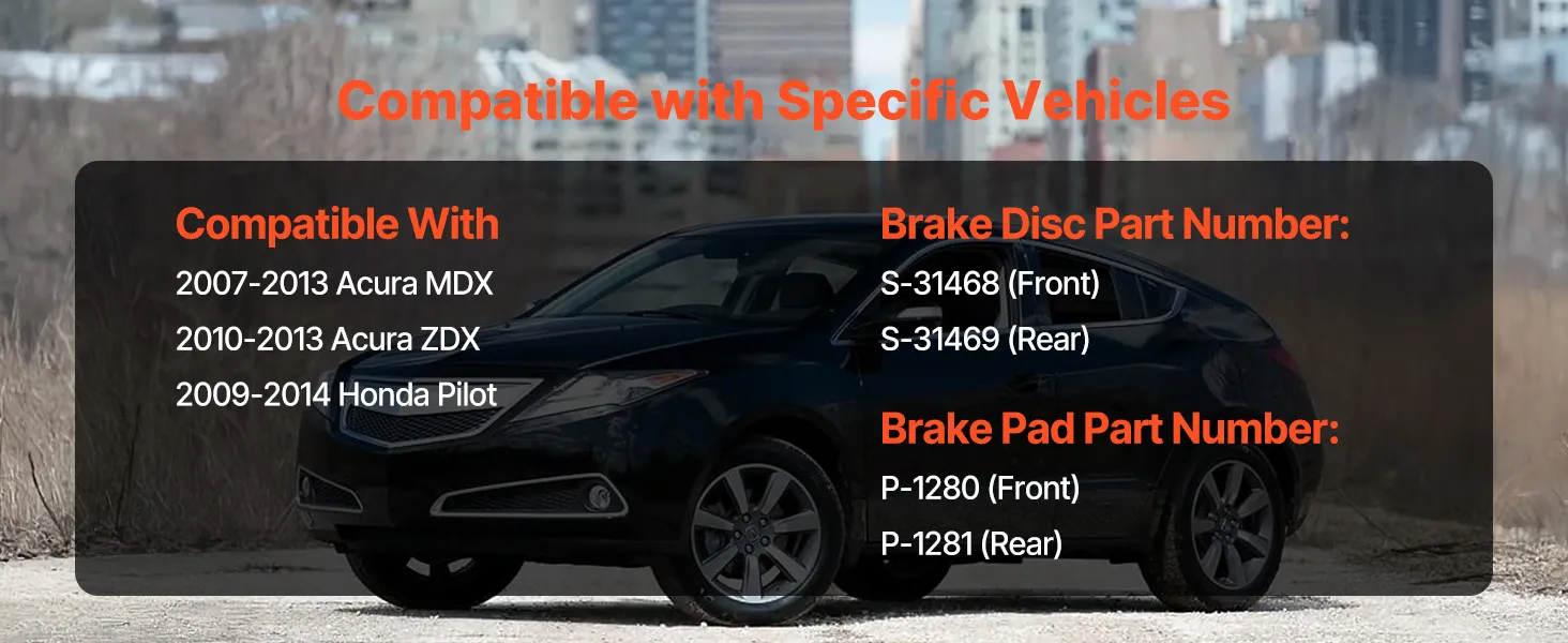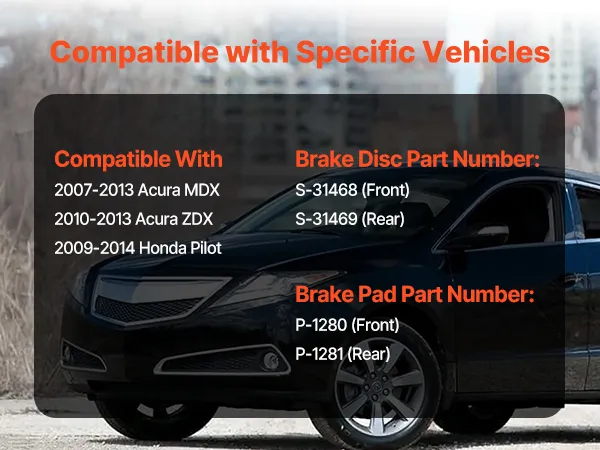 Meet OE Specifications: Rotor part numbers:S-31468 (Front), S-31469(Rear); Pad part numbers: P-1280(Front), P-1281 (Rear). Each rotor is precisely balanced at the factory to help reduce vibration and extend brake life