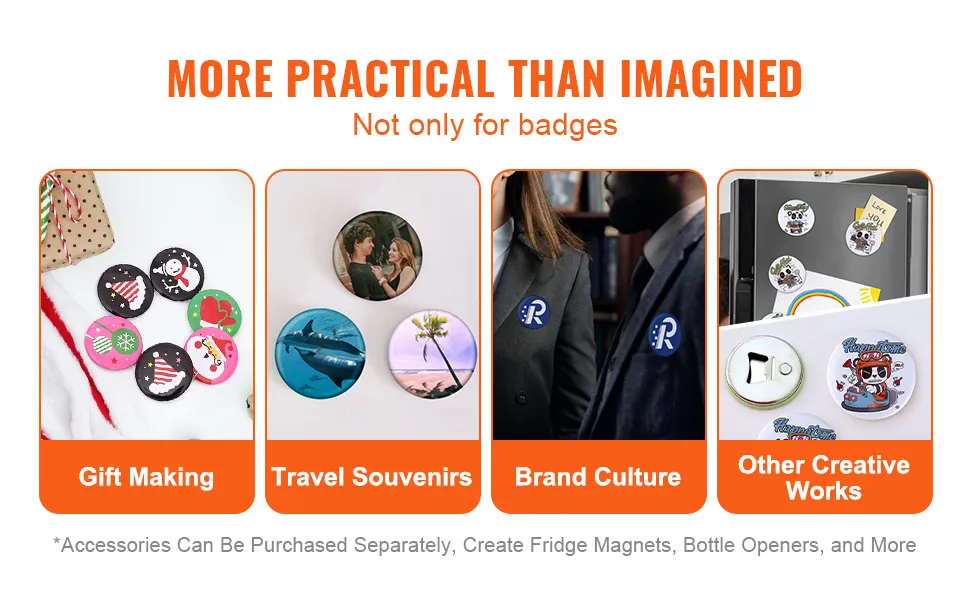 This button maker machine is made from high-quality materials. It's easy to use, making it perfect for all ages. You don't have to assemble it immediately. Start making buttons. The ergonomic arc handle ensures comfort during use. This tool is lightweight and portable, so you can take it anywhere. This button maker is ideal for future personal and small business use. Our strong design guarantees long-lasting performance. Therefore, it will be a valuable investment for any creative project. Whether looking for kids' DIY gifts or Christmas presents, this machine meets all needs.