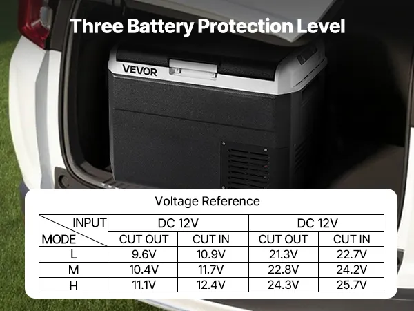 Ahorro de energía y protección de la batería: La protección de la batería (con tres niveles disponibles) garantiza la seguridad y la longevidad de la batería de su vehículo. Disfrute de su viaje con la nevera portátil para coche sin preocuparse por la descarga excesiva de la batería.