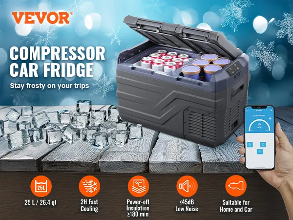 Enfriamiento rápido de 2 horas: Este refrigerador para auto de 12 V utiliza tecnología de enfriamiento por compresor, alcanzando el punto de apagado de -20 °C (-4 °F) en aproximadamente 2 horas a una temperatura ambiente de 77 °F. Enfría rápidamente y funciona con normalidad incluso con una inclinación de hasta 45 grados, lo que lo convierte en su compañero ideal para acampar o trabajar, manteniendo sus alimentos frescos. No necesita cubitos de hielo, lo que evita que los alimentos se echen a perder y ahorra dinero y espacio.