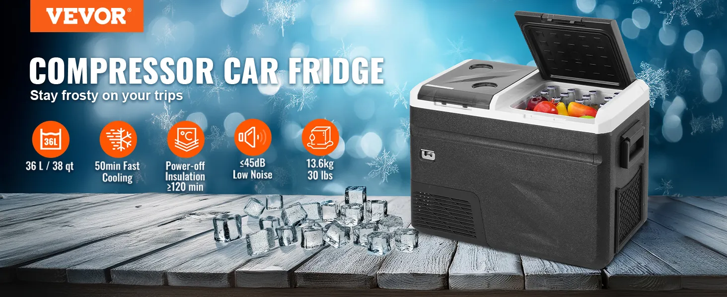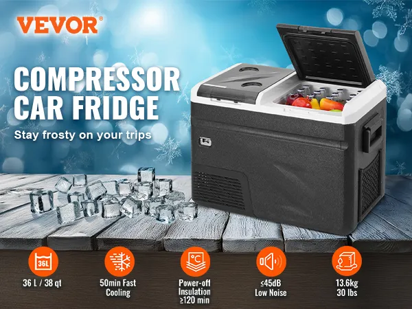 Refrigerador portátil para coche VEVOR con función de fabricación de hielo, 12 voltios, congelador portátil de una sola zona de 38 cuartos, temperatura ajustable de -20 °C a 20 °C, enfriador de compresor para camping, coche y autocaravana.