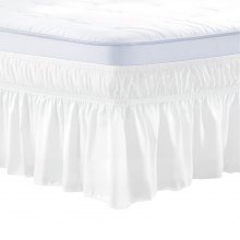 Falda de cama envolvente VEVOR, 38 cm de caída, volante blanco antipolvo, tamaño Queen, ajustable en tres lados con correa elástica de fácil ajuste, antiarrugas y resistente a la decoloración, lavable a máquina, para cama Queen.
