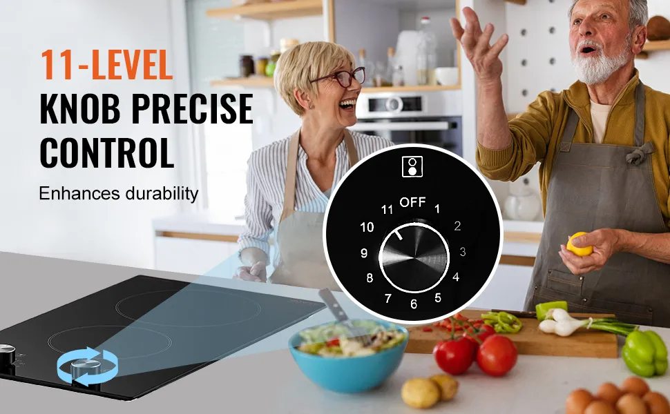 Cook quickly and comfortably with this VEVOR portable electric cooktop. This 12-inch ceramic stove offers two burners. They heat up fast and operate independently for maximum flexibility. With 1800W total power and 11 adjustable heat levels, it’s ready for everything from gentle simmering to high-heat frying. Compact yet powerful, it brings restaurant-style precision to small kitchens and modern homes. The sleek black glass design fits any space beautifully. Built for convenience and safety, it’s easy to use with simple knobs and reliable temperature control. It’s cooking made smarter and faster without sacrificing comfort or control.