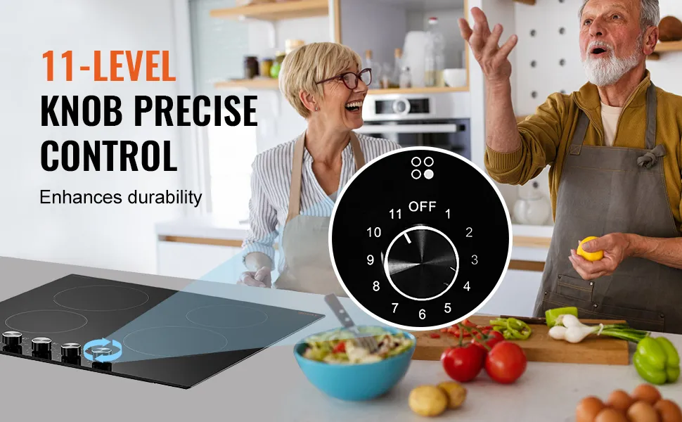 This electric cooktop features simple knob controls, unlike cooktops that use complex touch screens.The burners are individually controllable, and you can also control the heat accurately.The knobs are easy to use and have a strong, hand feel when operating, and this is perfect for every user who likes straightforward operation.The design guarantees that the family members who have less vision or do not feel comfortable with the digital panels can use it with no fear.