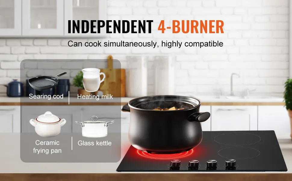 When it comes to upgrading your kitchen, nothing makes cooking easier than a reliable and efficient cooktop. The VEVOR glass ceramic cooktop blends sleek, modern style with powerful performance, making it a smart choice for any home. With four burners and multiple heat levels, it gives you the flexibility to prepare a variety of meals with ease. From quick weekday dinners to large holiday feasts, this built-in ceramic cooktop provides the heat, speed, and convenience you need to cook confidently and enjoy every moment in your kitchen.