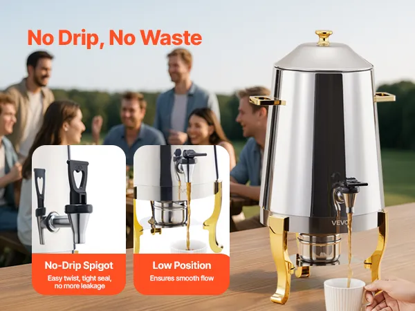 No Drip Spigot: Equipped with a spring-loaded spigot with a tight seal, the drink dispenser is convenient for dispensing without leakage, so you won't have to worry about cleaning spilled drinks. It helps keep your drink station clean and aesthetic