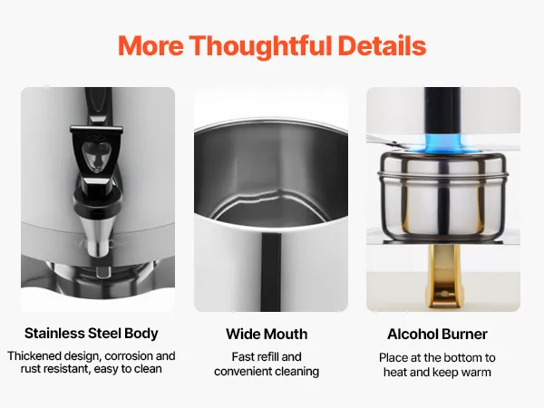 Keep Warm/Cold for a Long Time: The thickened stainless steel and bottom alcohol burner help keep drinks hot or cold for extended periods, perfect for fruit tea, iced tea, juice, water, and more