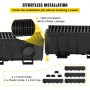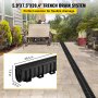 VEVOR trench drain system with grate, durable black plastic body, and end cap.