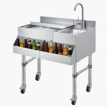 VEVOR Commercial Ice Bin, 95.3 L Underbar Ice Bin, 35.9 x 19 x 37 in Stainless Steel Ice Chest with Sliding Lid, Bottle Holders, and Adjustable Bullet Feet, Cocktail Unit for Bars, Restaurants, Pubs