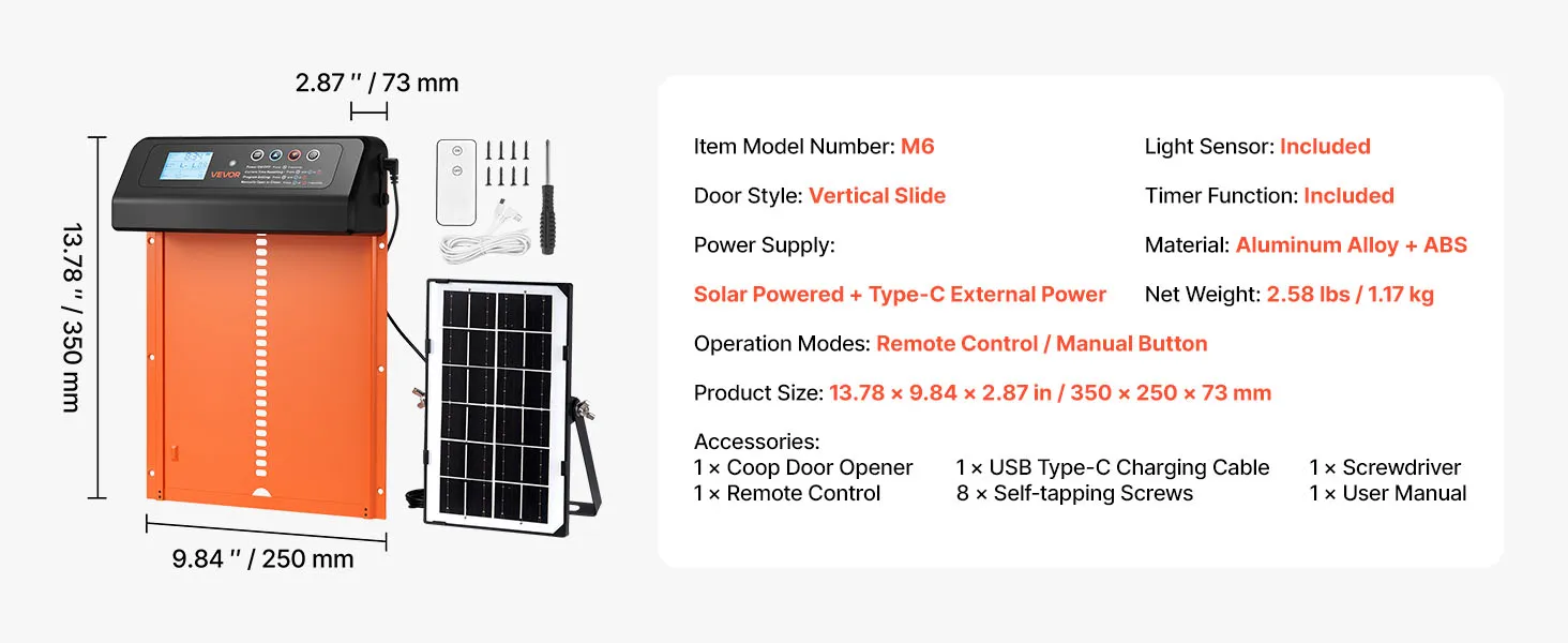 Fits Most Coops: Easy to install with included tools and instructions for beginner. Our electric chicken coop door is suitable for backyard chicken coops to small and mid-sized farms, meeting a wide range of poultry needs.