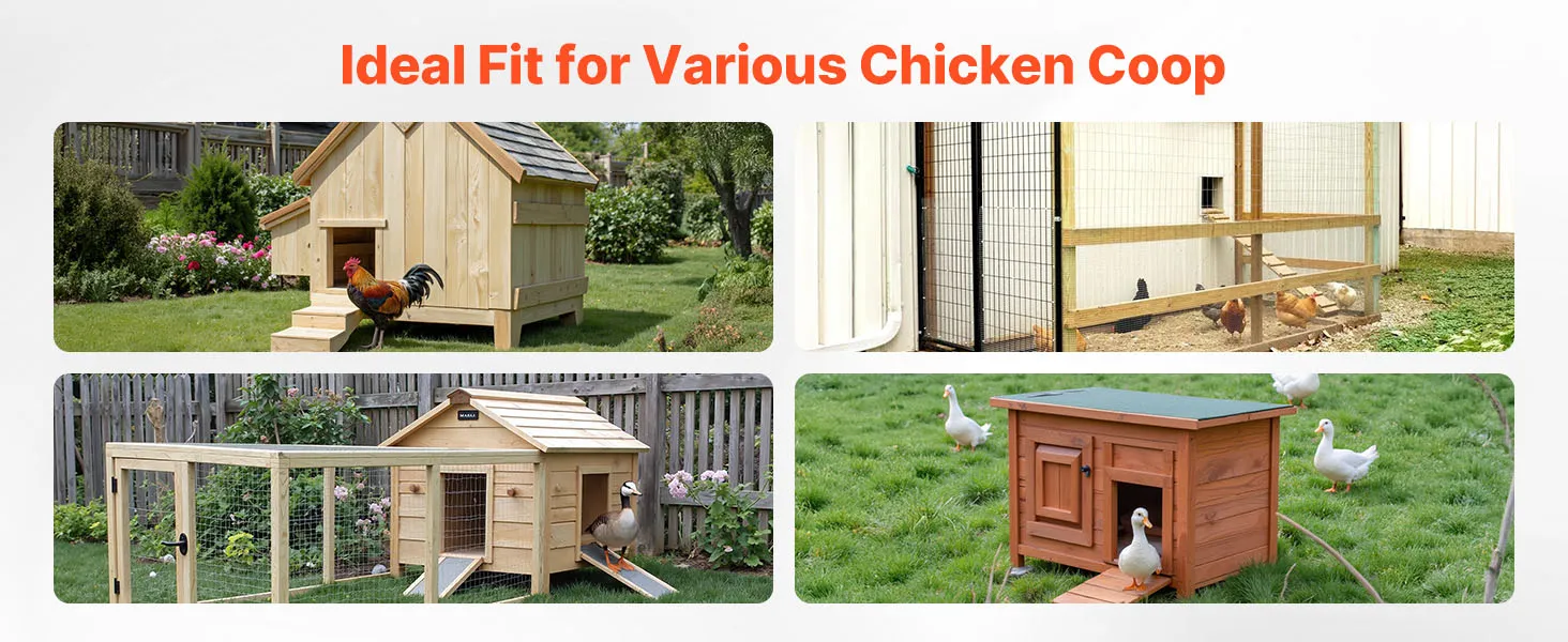 The chicken run door fits traditional A-frame, walkway-style, or free-range coops. Its flexible design make it easily adapt to various sizes and layouts.
