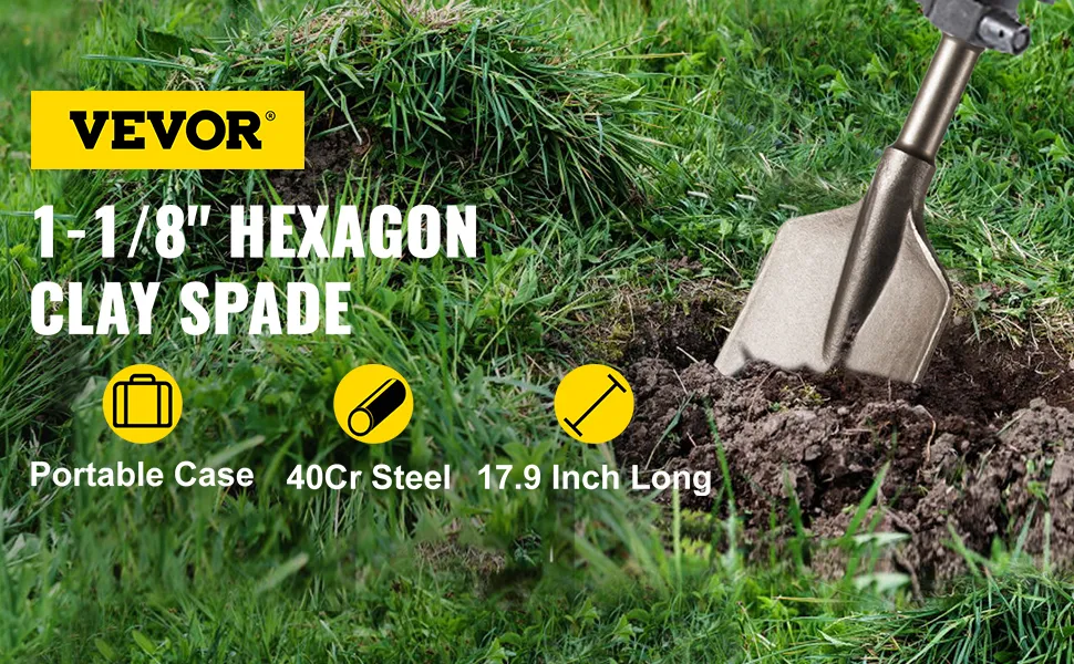Quality work requires accurate and durable tools. VEVOR's spade drill is the right tool if you need digging or trenching through clay, packed dirt, frozen soil, gravel, concrete, and similar materials for home improvement or gardening work. Our horse spade bit fits precisely into your rotary power drill with a 1-1/8" Hexagon shank to get your work done easily. Don't rely on a tool that might work when you can get a tool that will work.
