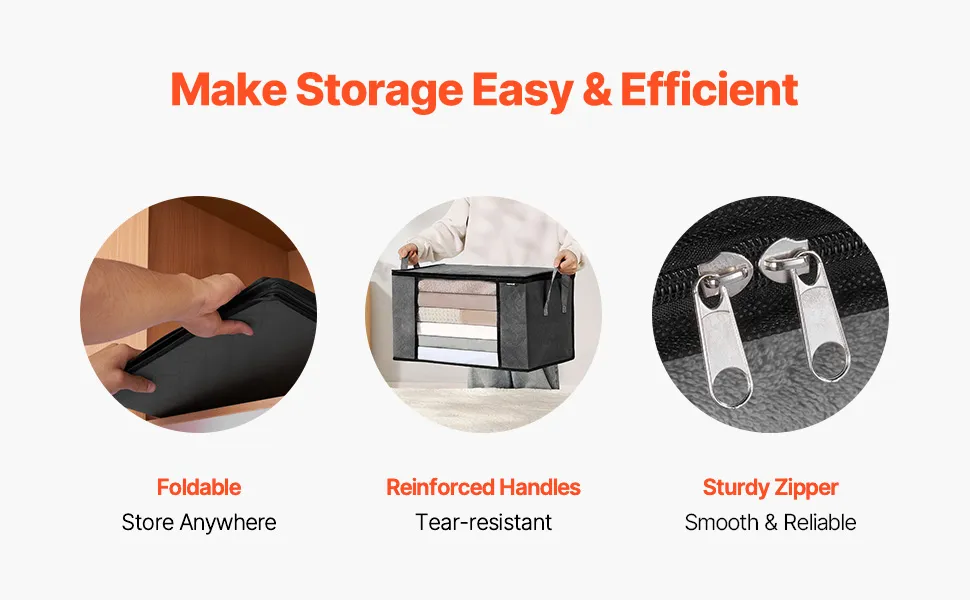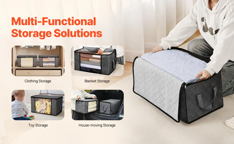 Things stored are always safe and free from dust. The top of the comforter organizer features a high-quality zipper that keeps it securely closed. Teeth that are smooth and firm stop things from getting stuck or opening by accident. Dirt, bugs, and damage can't get to bedding, cushions, and seasonal clothes. You can get to things quickly with the easy-to-use zippers. These organizers for comforters keep stored materials clean and in good condition. A reliable closure keeps everything in place, even when multiple bags are stacked on each other. This function makes things easier and gives you peace of mind.