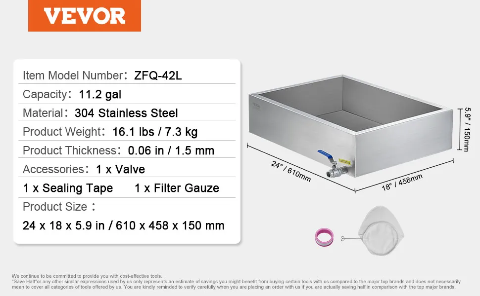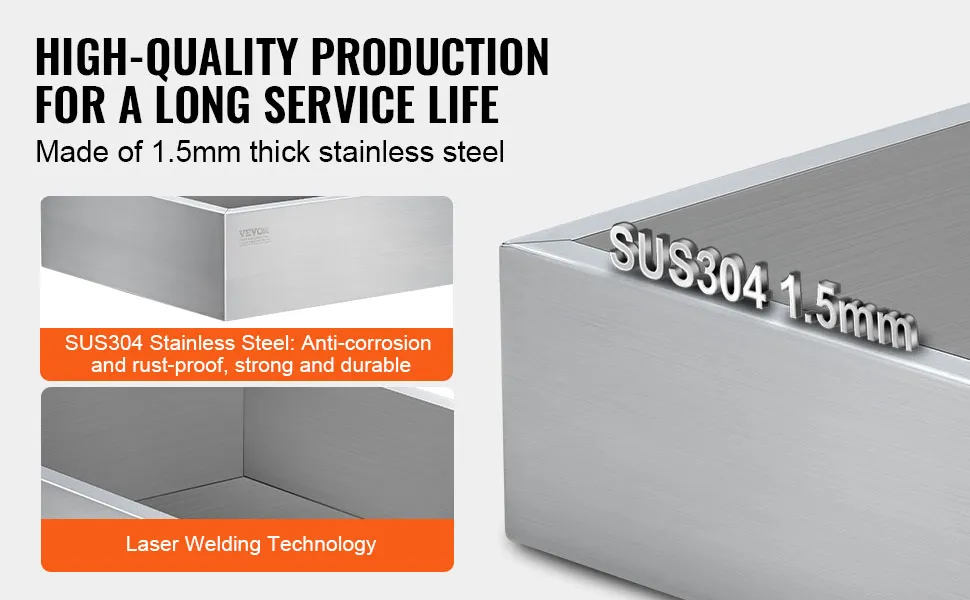 Food-Grade Material: Crafted from 0.06"/1.5mm thickened 304 stainless steel, meeting food secure standards, this maple syrup evaporator pan is smooth, rust-resistant, and corrosion-resistant, with excellent heat conductivity. It ensures the quality and taste of your maple syrup and enhances heating efficiency.