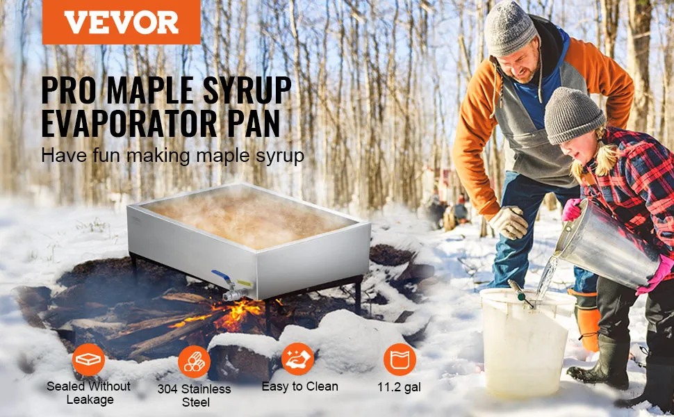 VEVOR Maple Syrup Evaporator Pan, 11.2 Gallon, 162 Cups of 8.8oz Maple Syrup, Flat Evaporator Pan with 1 Valve and 3 Heating Methods, 304 Stainless Steel Maple Syrup Pan for Home, Outdoor