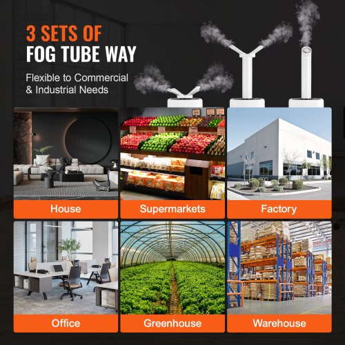 VEVOR Humidifier for Home Large Room, Commercial Humidifier for Whole House 1291.7 sq ft, 16L Water Tank & Night Light & 12h Timer & Auto Shut-Off , Greenhouse, Commercial Branch Tube w/ 360° Nozzle