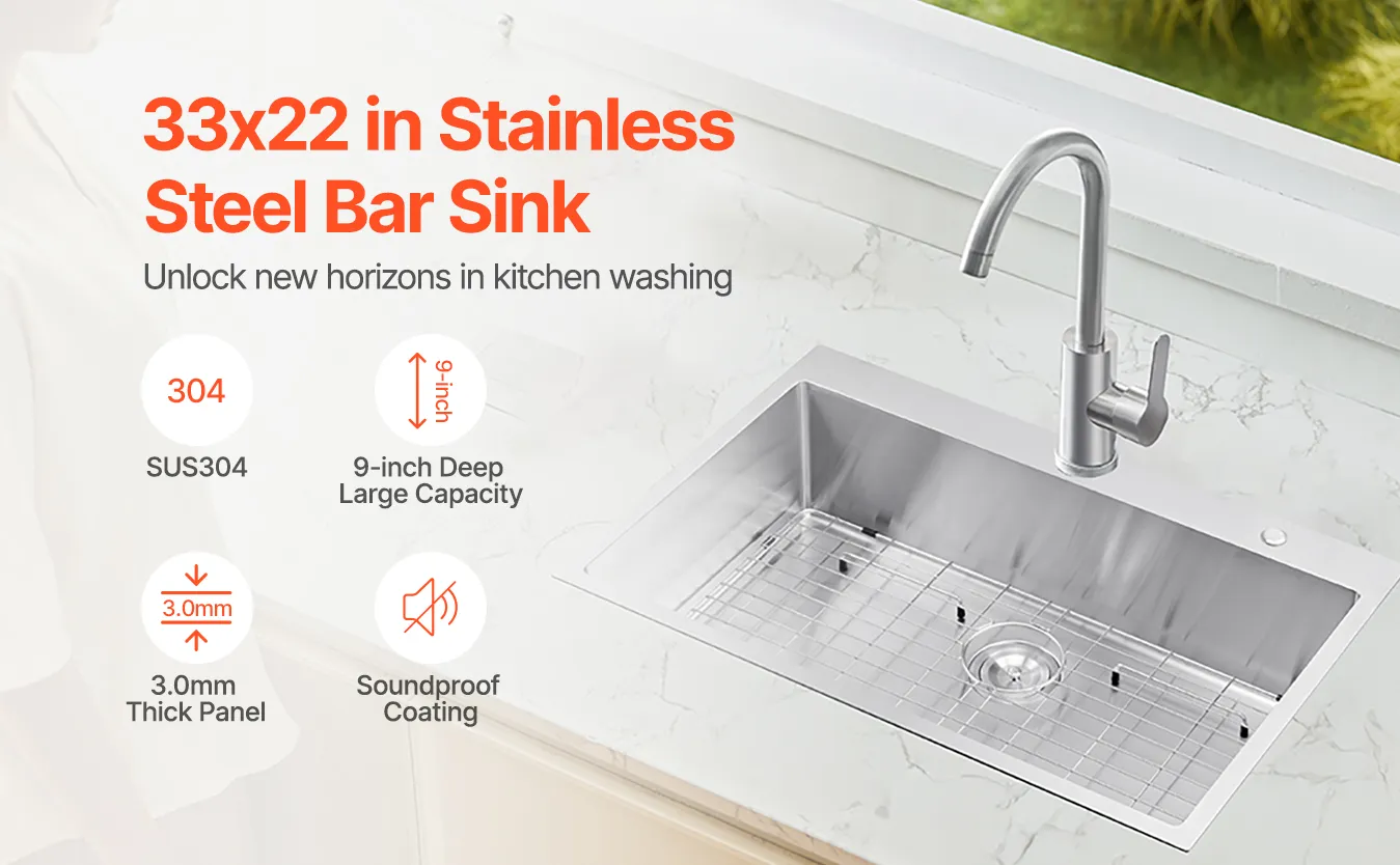 Easy Top-Mount Installation: Our stainless steel bar sink requires no major modifications to your kitchen cabinets or countertop. The ultra-thick 3mm 304 stainless steel edge allows for a secure top-mount installation, and the thick sink body ensures durability.