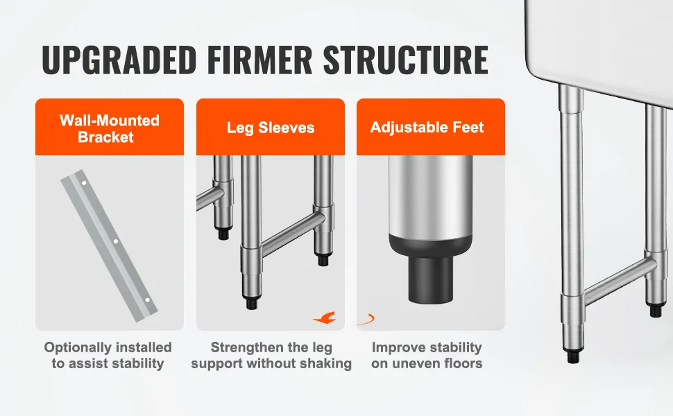 The VEVOR stainless steel prep sink is made for easy installation. It comes with pre-drilled holes for the faucet, simplifying the setup. The dimensions are accurate, ensuring it fits perfectly in your planned space. Whether you're looking for a new setup or if you need to replace it, this sink fits seamlessly. Our design takes into account real-world applications. This makes it user-friendly. The installation process is simple, saving time and effort. So, ease of installation is incredibly beneficial for busy commercial environments. Also, the perfect fit also ensures no water leaks around the edges.