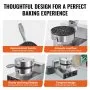 The VEVOR round waffle maker is designed for user ease. It has a timer and sound alerts. They guide you from preheating to completion. You'll hear a gentle beep when it's time to pour the batter and another when your waffle is done.