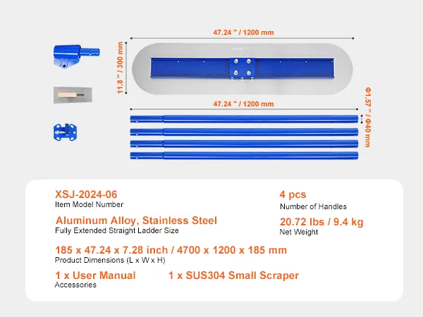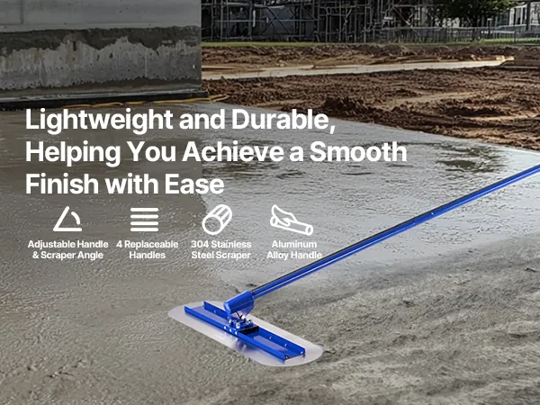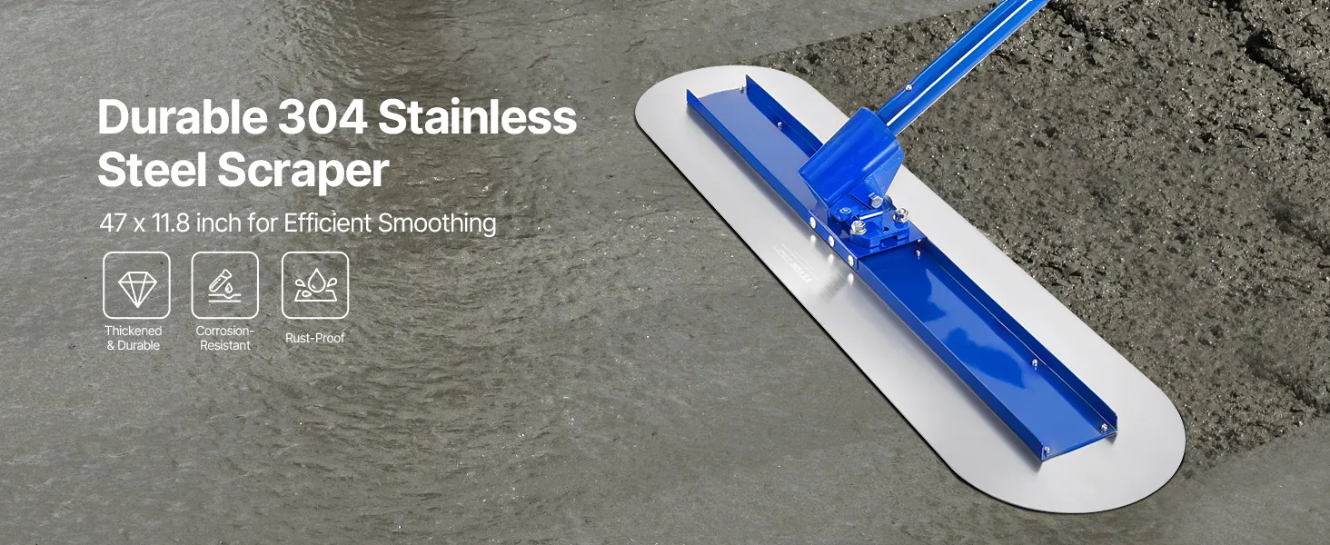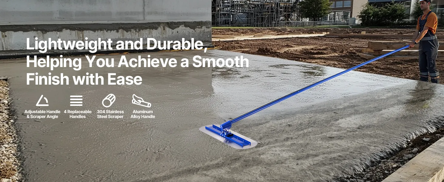 Premium Quality: Made of 304 stainless steel, the scraper of this bull float is smooth and sturdy. The aluminum alloy handle ensures comfort, reducing fatigue even during extended use.