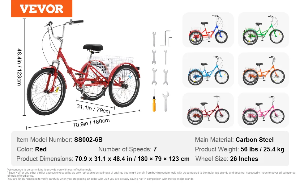The VEVOR folding adult tricycle is simple to assemble. It comes with user-friendly instructions. The process is straightforward for those with some bike assembly experience. They mainly need the included tools. This tricycle has thoughtful features. Assembly instructions include clear pictures, so it's simple to follow along. Even if you're not an expert, you can put it together. Our tricycle is designed for easy setup and use. Additionally, the folding design adds extra convenience. You can fold it for storage or transport. Therefore, it is versatile and can be used for various purposes.