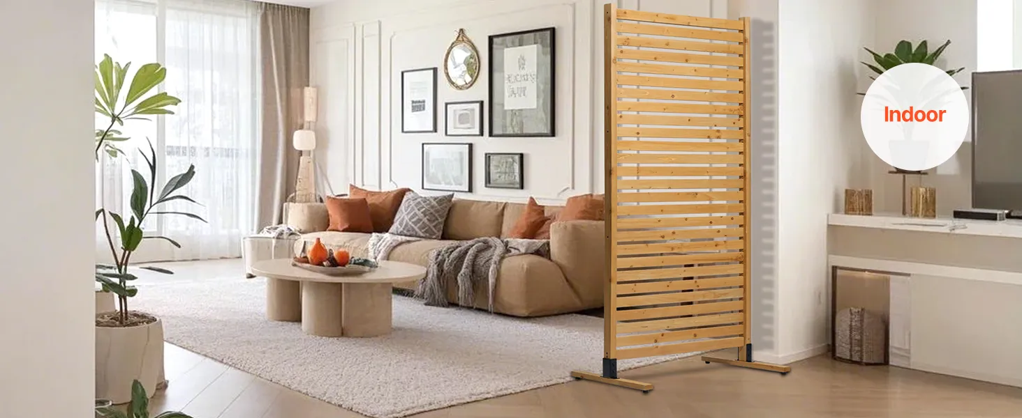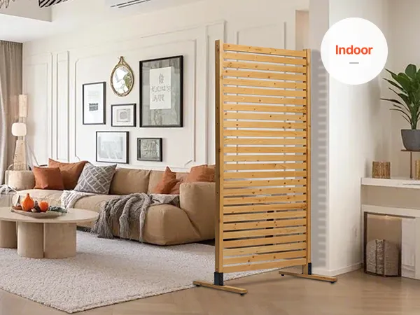 Elegant Privacy Solution: This wooden privacy screen create a private retreat with a stylish privacy screen that not only divides spaces but also seamlessly complements your interior décor, enhancing both aesthetics and privacy.
