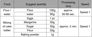 - Please pay attention to the container’s capacity line. Once the food reaches the max line, please stop the operation and pour out the food.