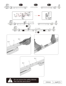 The mechanical arm will pop out immediately after the safety casing is removed, which will cause damage to the assembler. Please do not remove the safety casing.