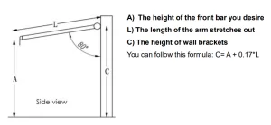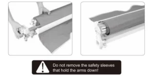 ◎When the awning is fully extended, the arm link on both sides is about 8” from the edge, but it must be noted that the distance between the two sides must be consistent. Otherwise, it will cause uneven stretching of the product.
