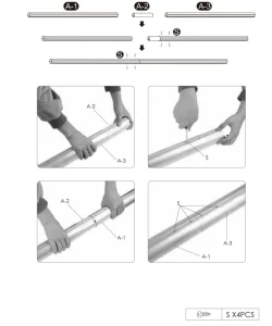 Roller assemble: Insert the roller connector (A-2) into the right roller (A-3) and secure it with the screw (S). Connect the left pulley (A-1) with the pulley connector (A-2) and fix it with the screw (S). Now you have a full-length roller.