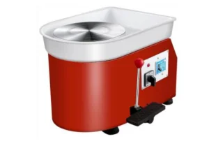 Push the lever/pedal to adjust the speed and start clay molding with the tools.