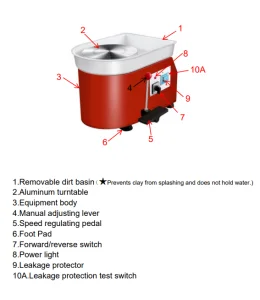 - This pottery wheel only applies to ceramic drawings and cannot be used for other purposes. Do not use the equipment brutally.