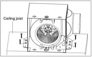 3. Mount the fan housing to the ceiling joist or wall stud using the wood screws (included) where indicated.