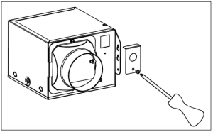4. Remove wiring box cover from fan housing with Phillips screwdriver (not included).
