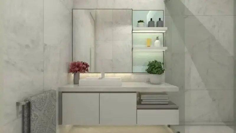 Fixed shelves are ideal for daily basics like soap or toothpaste. If you want everything neat, go for a cabinet with multiple compartments. This layout helps you store both large and small items while using all the space inside effectively.