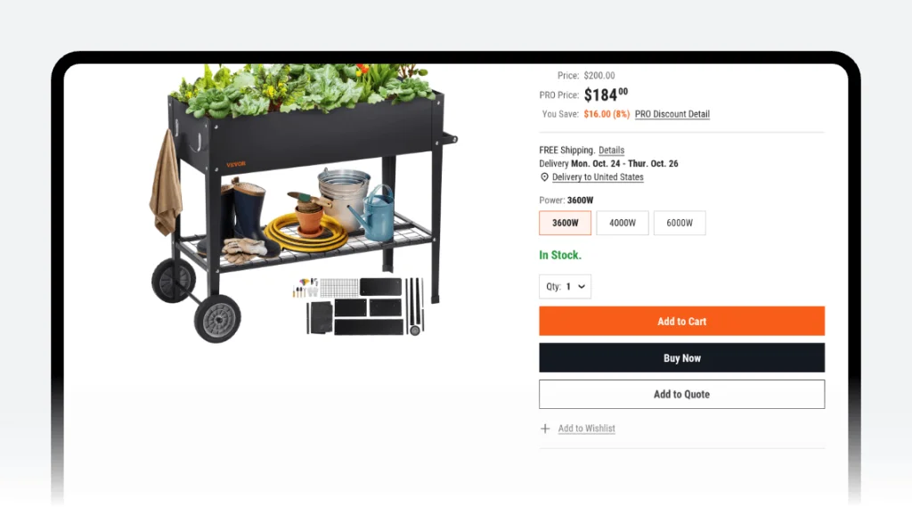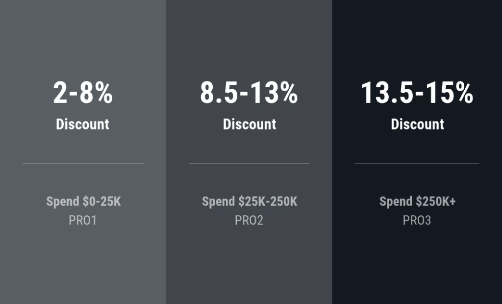 The VEVOR Pro program increases your discount as you shop more. Starting with a 2% discount, it grows with every purchase and reaches up to 15% off as you move up the program level.