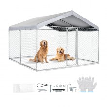 VEVOR Outdoor Dog Kennel, 9.84 x 9.84 x 7.05 ft Large Dog Kennel with Secure Lock, Outside Dogs Enclosures with UV-Resistant & Waterproof Roof Cover, Heavy Duty Pet Crate Cage Run for Large Dogs