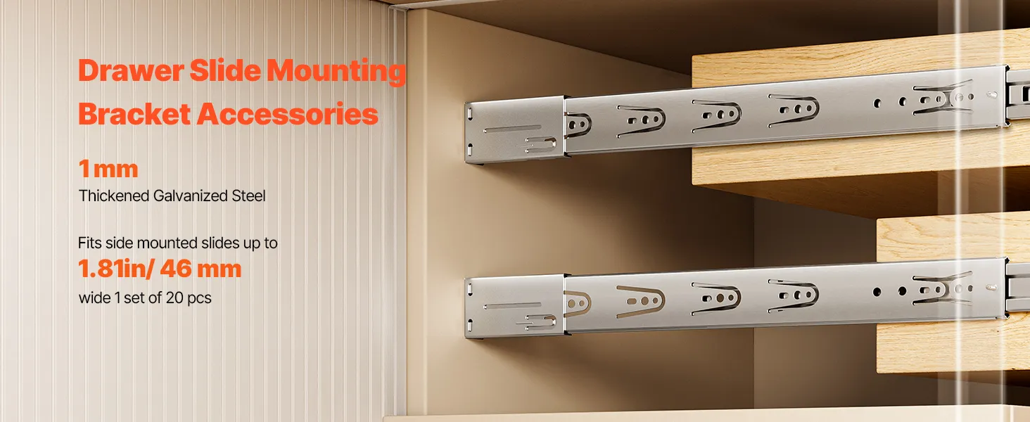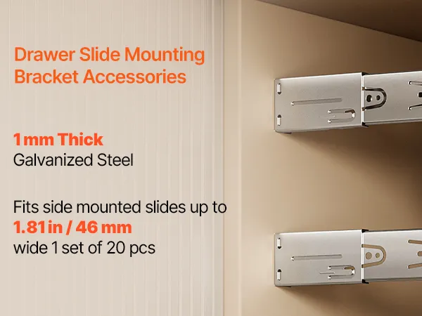 Perfecto para guías laterales: Los soportes para guías de cajón son compatibles con guías laterales de 46 mm de ancho. Para obtener los mejores resultados, también puede adquirir las guías laterales de nuestra marca para una compatibilidad perfecta.