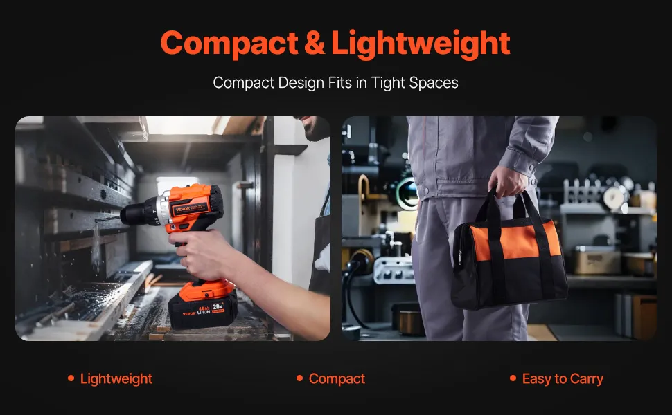 The compact and lightweight design makes the cordless power tool combo kit easy to carry and use, even in tight spaces.