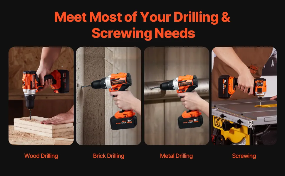 Ideal for woodworking, metal drilling, and screw driving, this cordless tool set is suitable for home DIY, building renovations, car repairs, and mechanical processing.