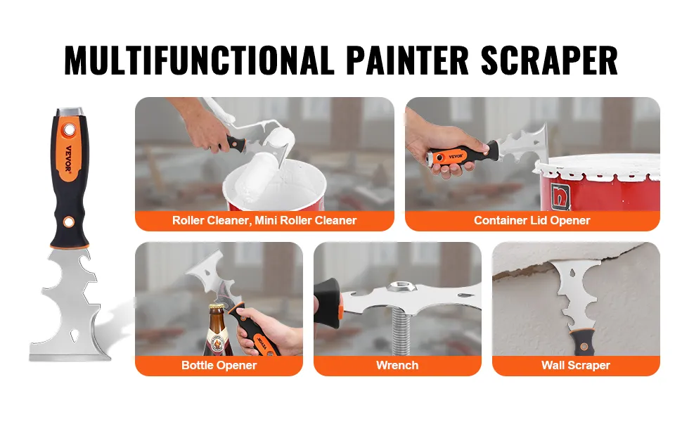 Versatile Usage: The 3-inch painter scraper unlocks multiple skills with just one tool, easily addressing DIY needs such as pulling nails, opening lids, and cleaning rollers. It combines practical tools into one, making it your reliable helper for home improvement.