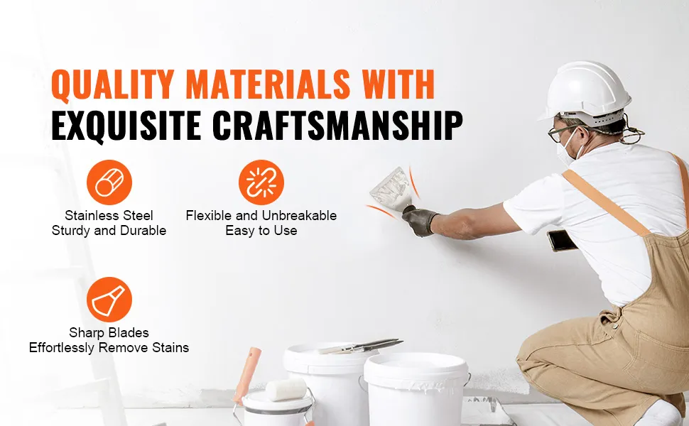 Made from sturdy stainless steel, the drywall knife is flexible and won't break easily. Its sharp edge makes it easy to remove dirt and smooth out walls, making it the ideal choice for your wall projects.